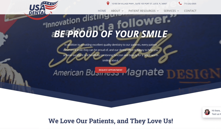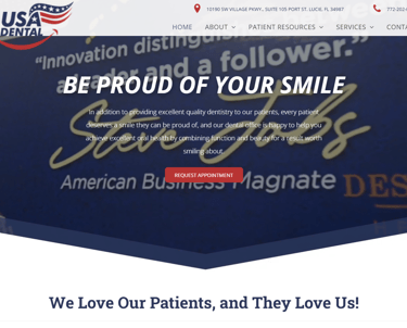 We designed the USA Dental website with a clean, professional layout focused on user experience and accessibility. The site features an easy-to-navigate menu, appointment request integration, live chat support, and a bold hero section with a clear call-to-action. Its modern design ensures a seamless experience across all devices, helping patients quickly find services and schedule appointments online.